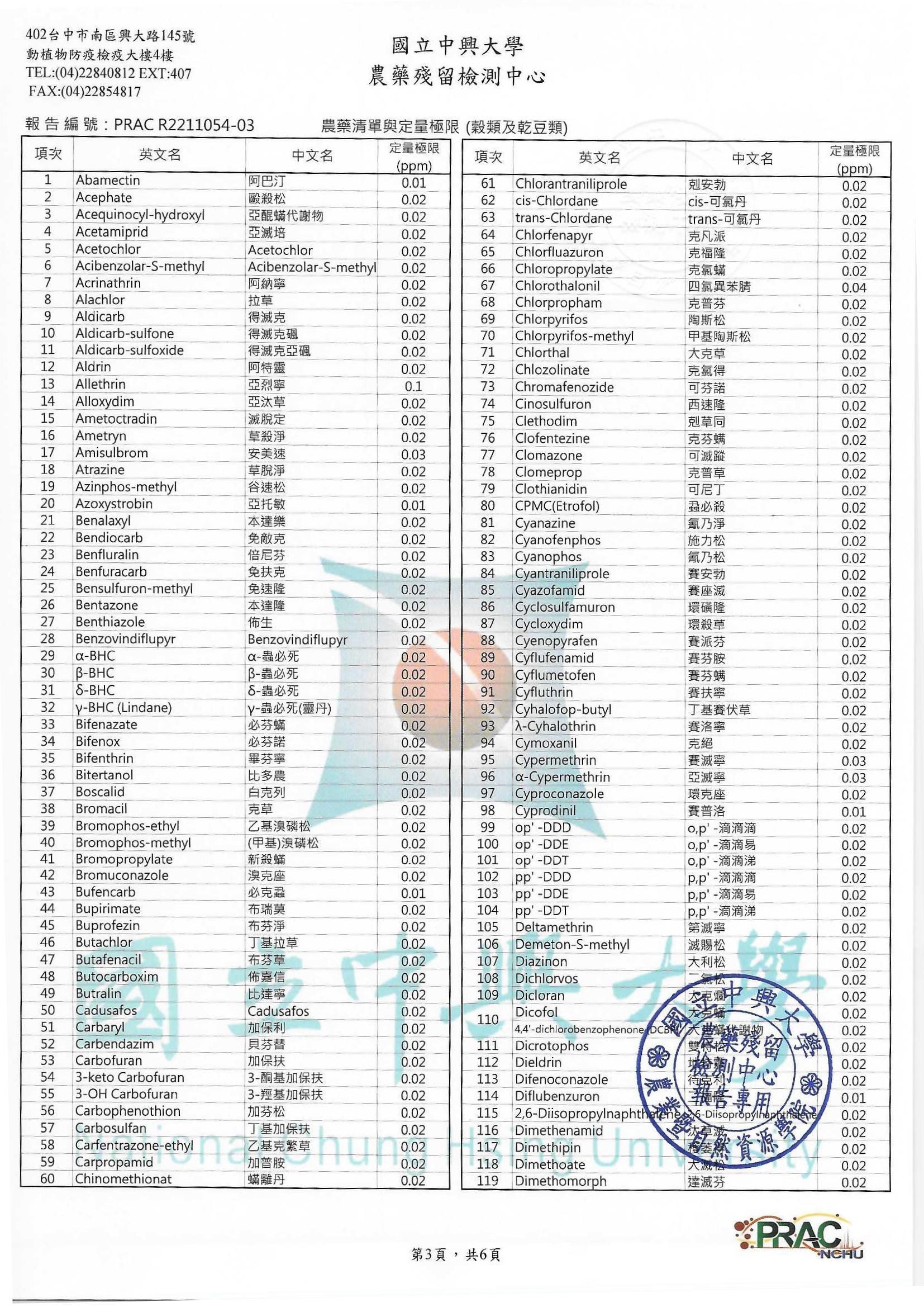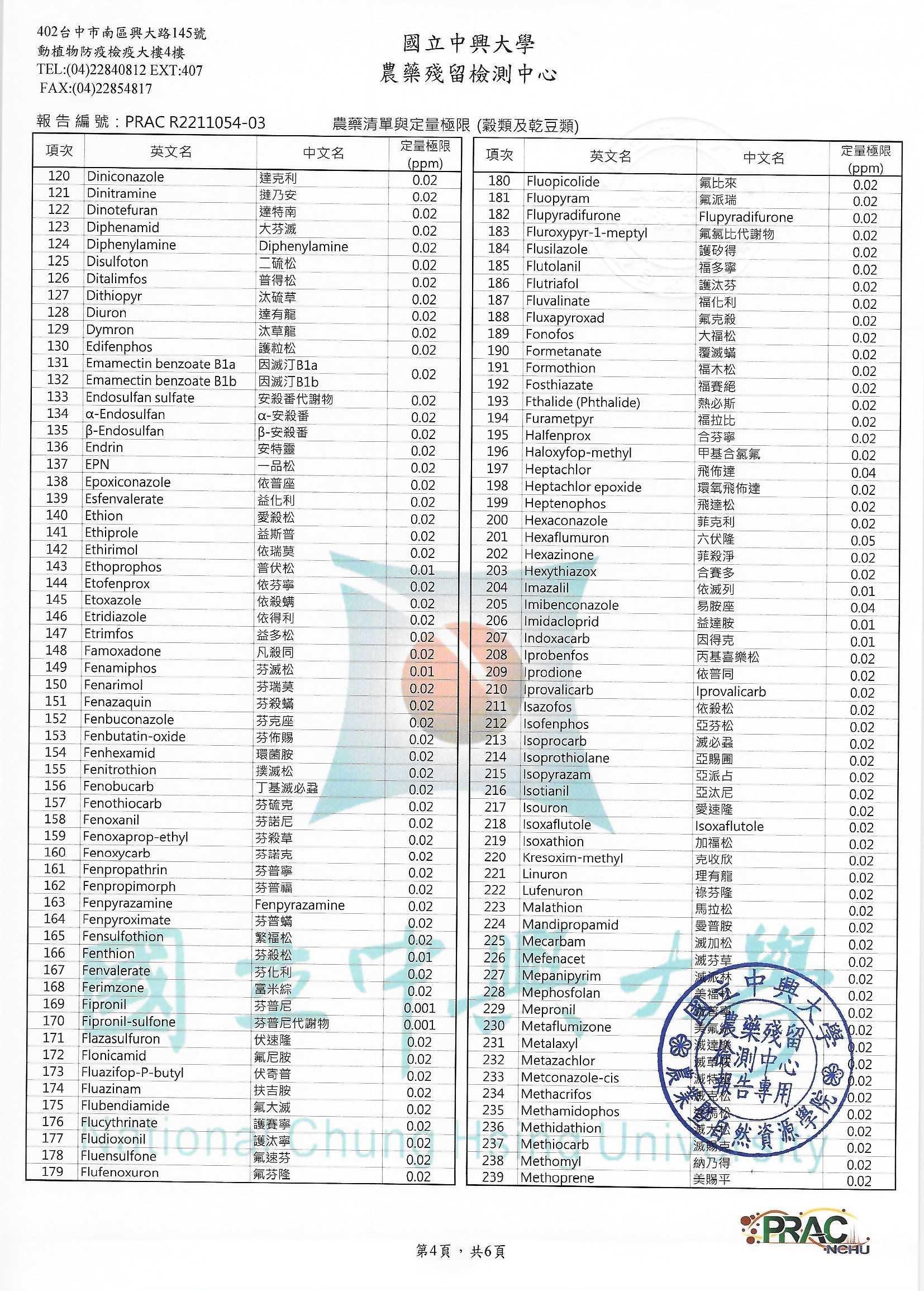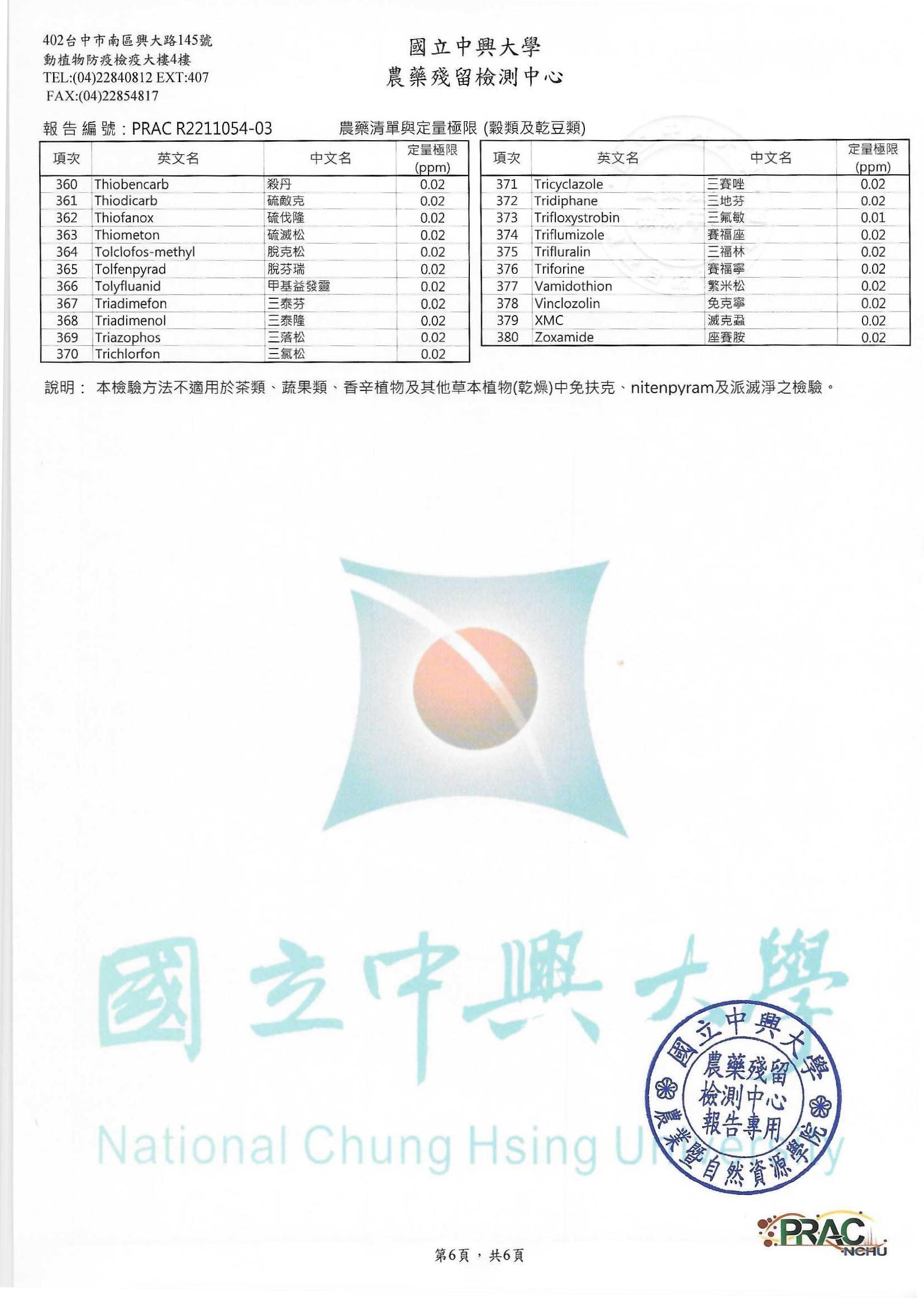 申請檢驗項目:380種農藥殘留檢驗結果:N.D.(未檢出)