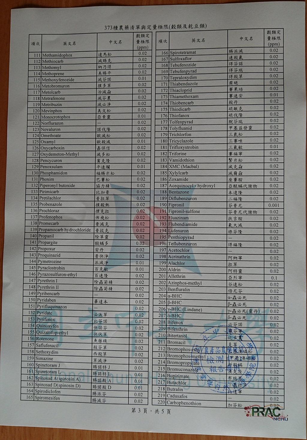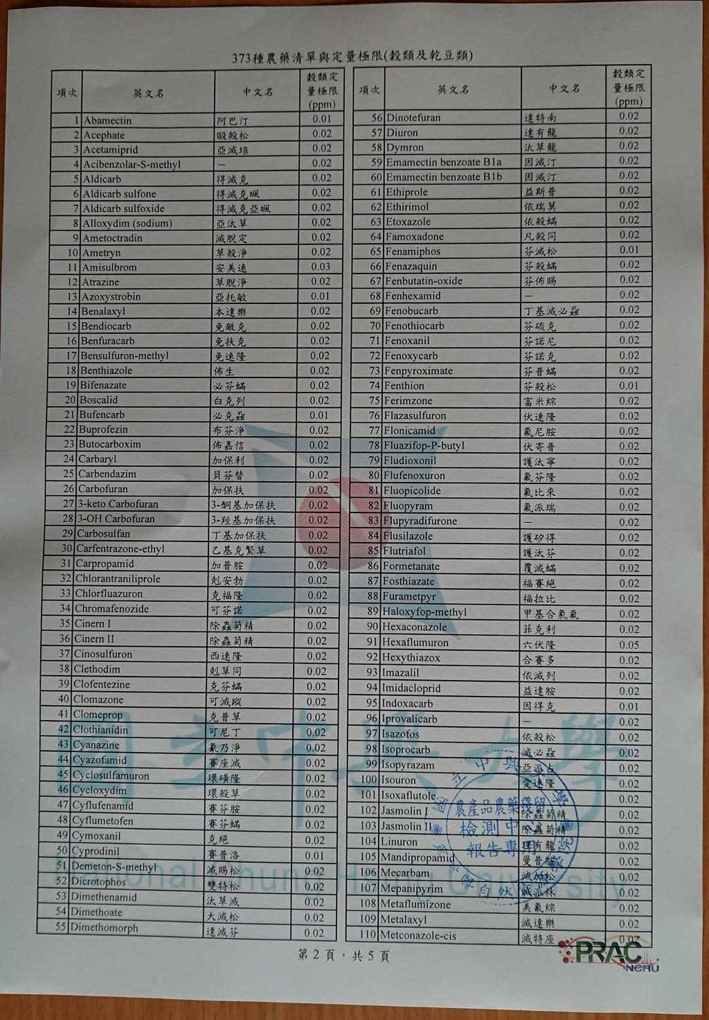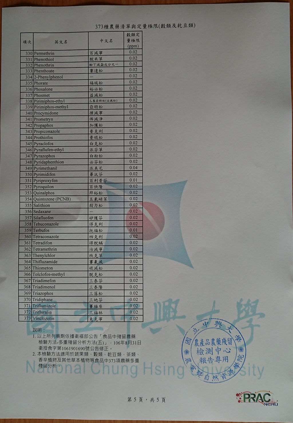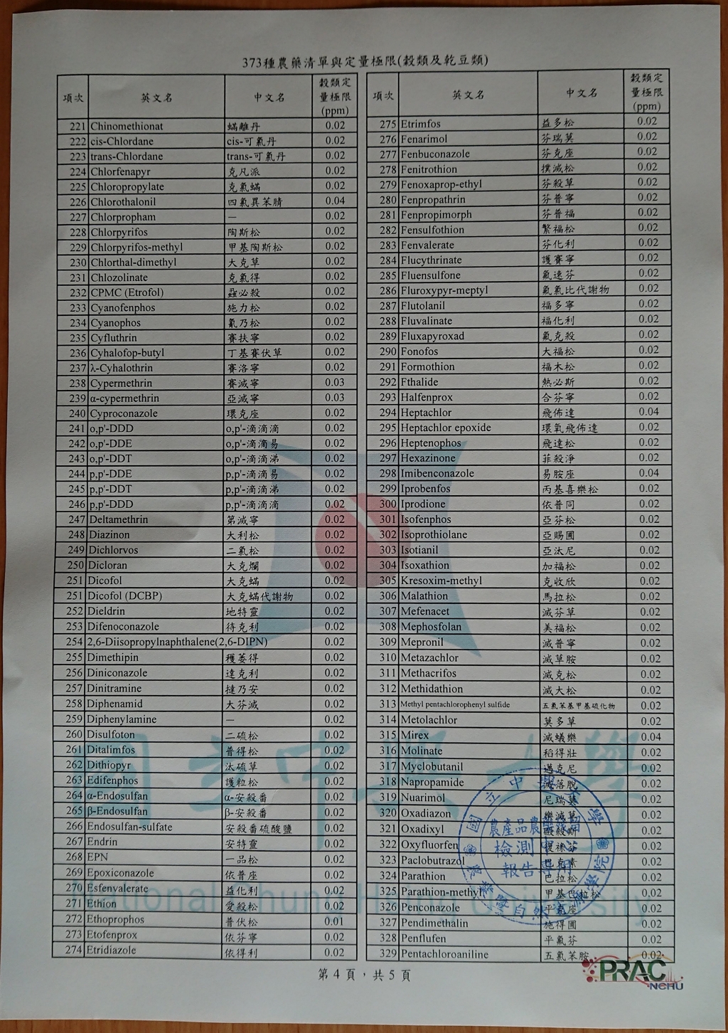 申請檢驗項目:373種農藥殘留檢驗結果:N.D.(未檢出)