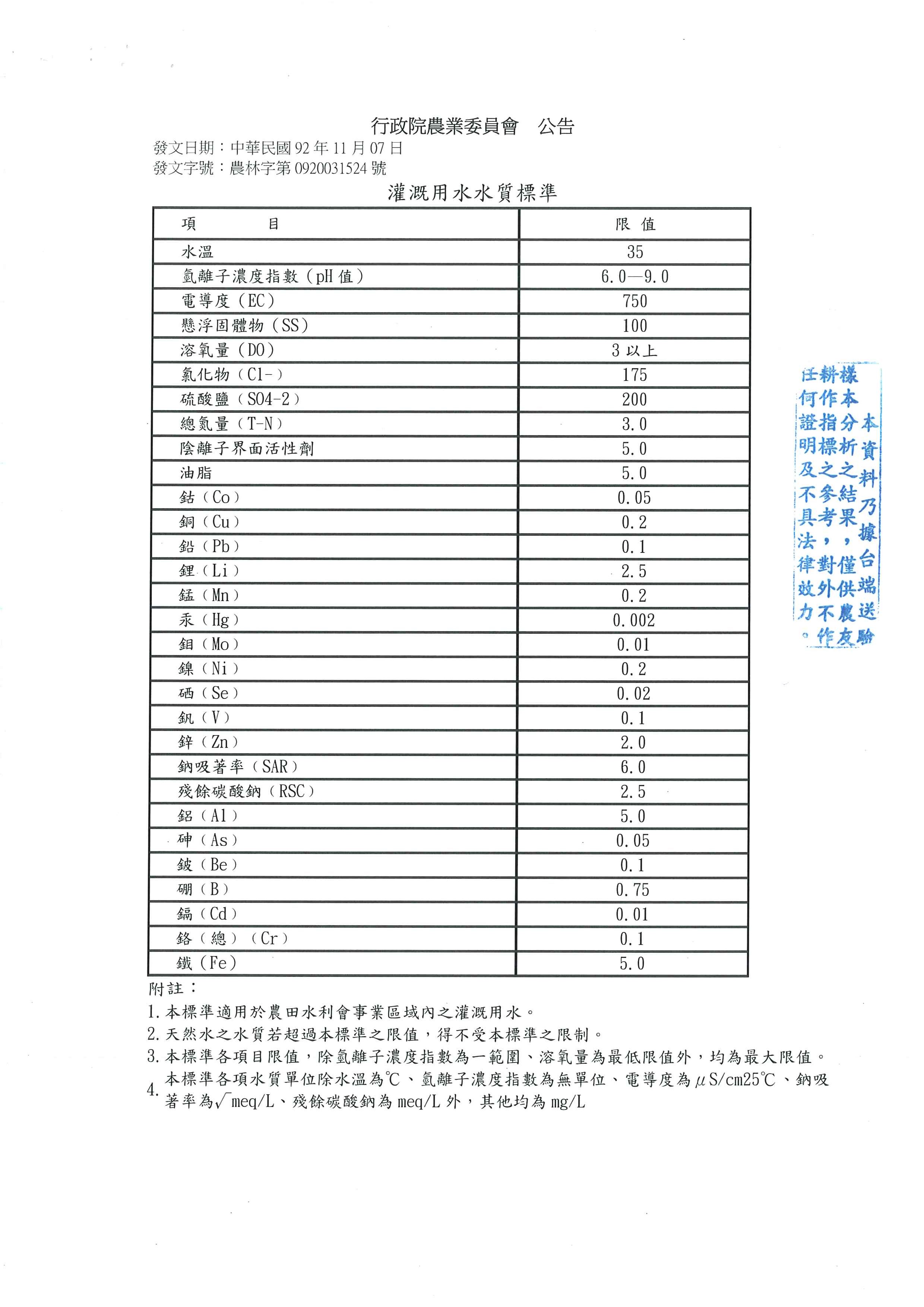 「電導度」與「硫酸鹽」(註1),此二項會超出標準值的原因是「環境背景值」(註2),也就是本來此塊土地的原始情況會產生的結果,並不是由於被汙染所造成的,會這樣判讀是因為結合土壤的分析是正常的,加上台灣在數千年前,大部分的陸地都是在海洋內,是後期地殼變動下,現在看的到陸地才慢慢的出現(隆起)。