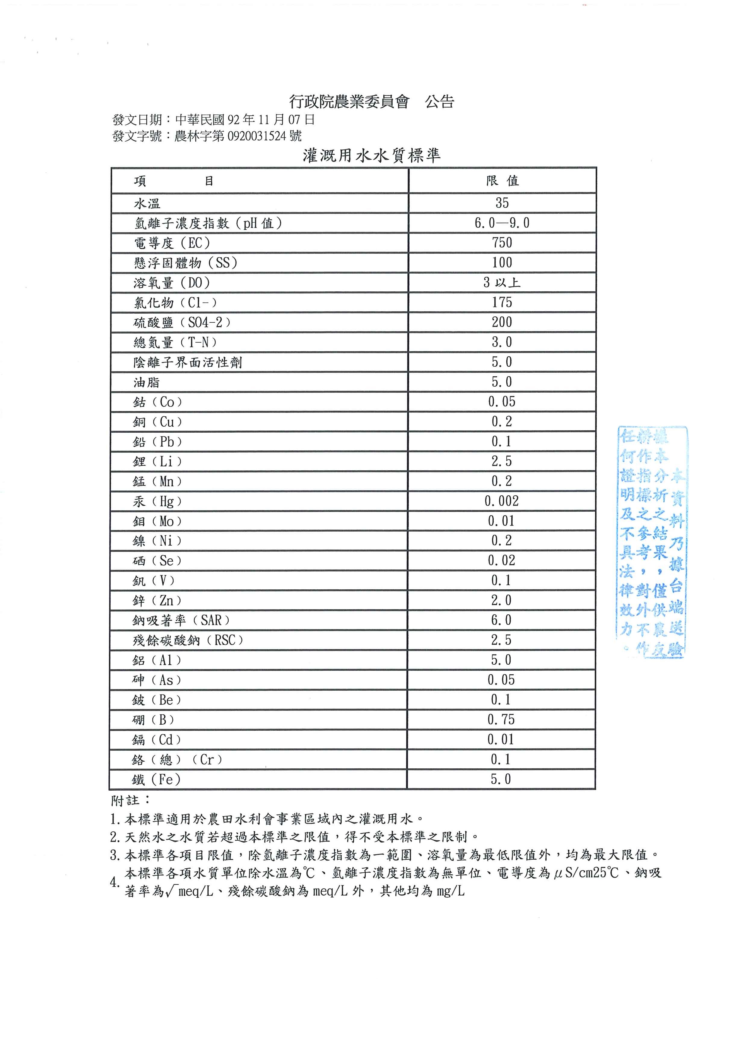 「電導度」與「硫酸鹽」(註1),此二項會超出標準值的原因是「環境背景值」(註2),也就是本來此塊土地的原始情況會產生的結果,並不是由於被汙染所造成的,會這樣判讀是因為結合土壤的分析是正常的,加上台灣在數千年前,大部分的陸地都是在海洋內,是後期地殼變動下,現在看的到陸地才慢慢的出現(隆起)。